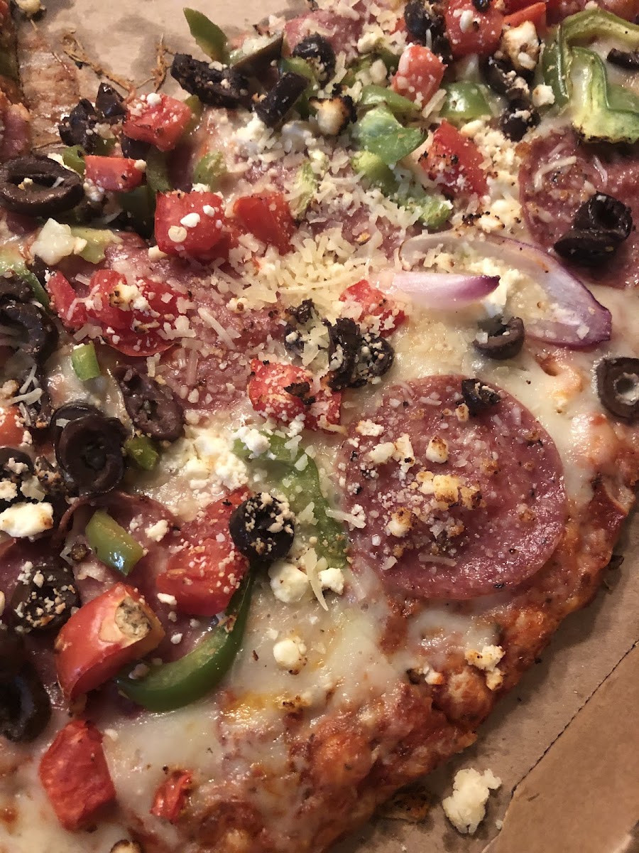 Great fat pizza - plenty of everything- thick crust, a lot of sauce, a lot of cheese. Reminds me Costco pizza. Good thing - they have one person size pizza for about $10 and nice salad with boiled eggs for about $10. Sorry, no pictures from me, everyone was too hungry. If you prefer less calories- there is another pizza spot across the street, 1 min away.